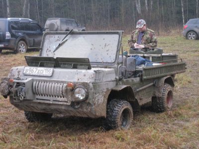 Сцепление потихоньку накрывалось «медным тазом», приняли решение продвигаться подобру, по-здорову на базу. Путь преградил естественный монстр-овраг с запутавшимся Уазиком, застрявшим на подъеме. Решили форсировать ландшафтное препятствие в самом слабом, читай узком месте при помощи трапов. С трапов соскользнули в самом глубоком месте оврага, засели по самые помидоры. ЛуАЗ с креном на корму градусов 30 смотрит в небо из недр оврага. Залебедились «зубами за воздух» - без проблем. Последний участок на границе между лесом и чистым полем не хотел нас отпускать по-хорошему. Повис наш Росинант на брюхо. Медленно спустились сумерки. Лебедка отказалась помогать нам, запутав окончательно трос. Сцепление отжило свой век. Всё чаще и чаще в мыслях возникали картинки теплого и родного очага. Затосковалось. Проползавшая мимо полу-котлета прихватила нас на буксир, сорвала с нашей стоянки и дотащила до асфальта. Дай бог им здоровья и пусть путь её будет всегда покрыт асфальтом. Став на время пешеходом безлошадным, направился в лагерь за своей машиной. Утром, по хорошо освещенной улице, я не только доехал до места сам, но и вернулся обратно, таща за собой ТПК-шку. Вечером я «замерз» на ровном месте через 5 метров. Час меня вызволял из бездорожного плена добрый Уазик, и, получив на карман косарь деревянных с грустью спросил: "Водка есть?". ВЫВОДЫ. 1.Плюсы: - мотор с непроверенным в экстриме карбюратором (двухкамерный, ставили и регулировали ночью перед выездом) – выше всяких похвал! Движок тянул везде, холостые держит, не перепивает топлива. На любых режимах сохранял «холодный рассудок», ВСЕГДА! Установили "правильный" отсос воздуха, максимальная температура - чуть выше 80. Включение охлаждения дополнительного радиатора для масла - чуть ниже 80. - лебедка KEW4500- класс! Мощности достаточно, даже с запасом. Работает не очень быстро, но зато верно. Есть одно НО. Порвался трос-удлинитель для буксирования и родной трос забородило (рыбаки меня поймут). Видимо придется решать вопрос хирургическим путем. Поэтому ребром стоит вопрос: новый брать кевларовый или пойти по простому пути, установить металлический? - колеса – ВАЩЕ суперкласс, гребут как для себя! Вот только радиус мелковат, но «на скорость особо не влияет». Так что по мне пусть стоят. - блокировки рулят! 2.Минусы: - сцепление прожило недолго. Возникают вопросы: Ставить такое же? Или почесать репу на надежное? - руль. Отрыв рук по самую жопу. Понял, что поменяв редуктор проблемы не решить, и электрогидро усилитель кардинально не поможет, надо менять всю систему целиком, иначе тяги примут форму зигзага, едва завидят грязь. Но как это сделать на ТПК? - трапы. Замечательная вещь, но: те которые есть в наличии тяжелые; применяются только в оврагах; слишком уж много грязи собирают!; надо продумать крепление - при боьших нагрузках не сдюжила крепёжная резинка. 3.Итого: - транспорт испытан на 100 процентов, удовлетворен результатом. - с "котлетами" всех мастей нам не по пути, уж точно не сейчас и не в таком виде. - для моих целей, машинка что надо, охота и автотуризм – наш отдых!